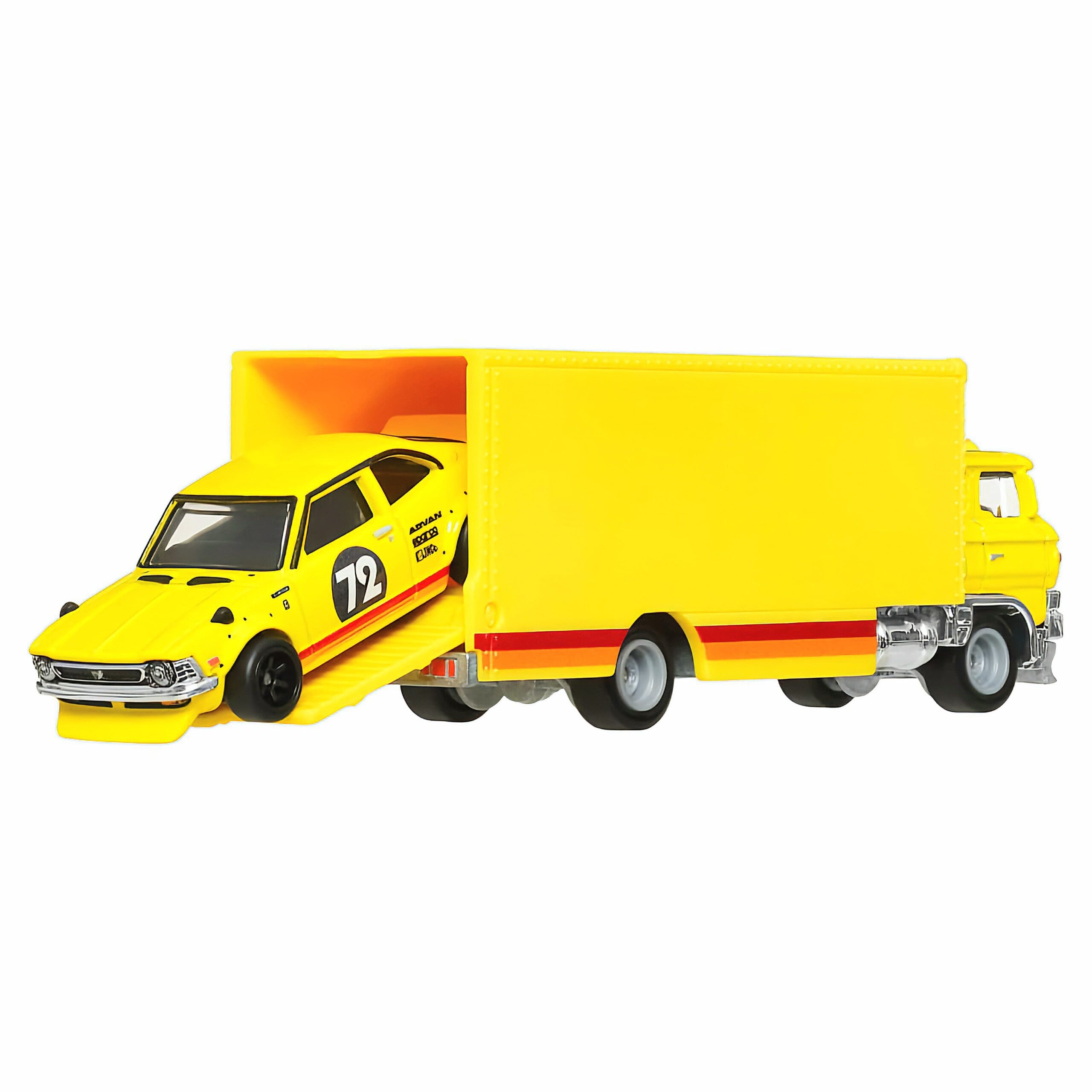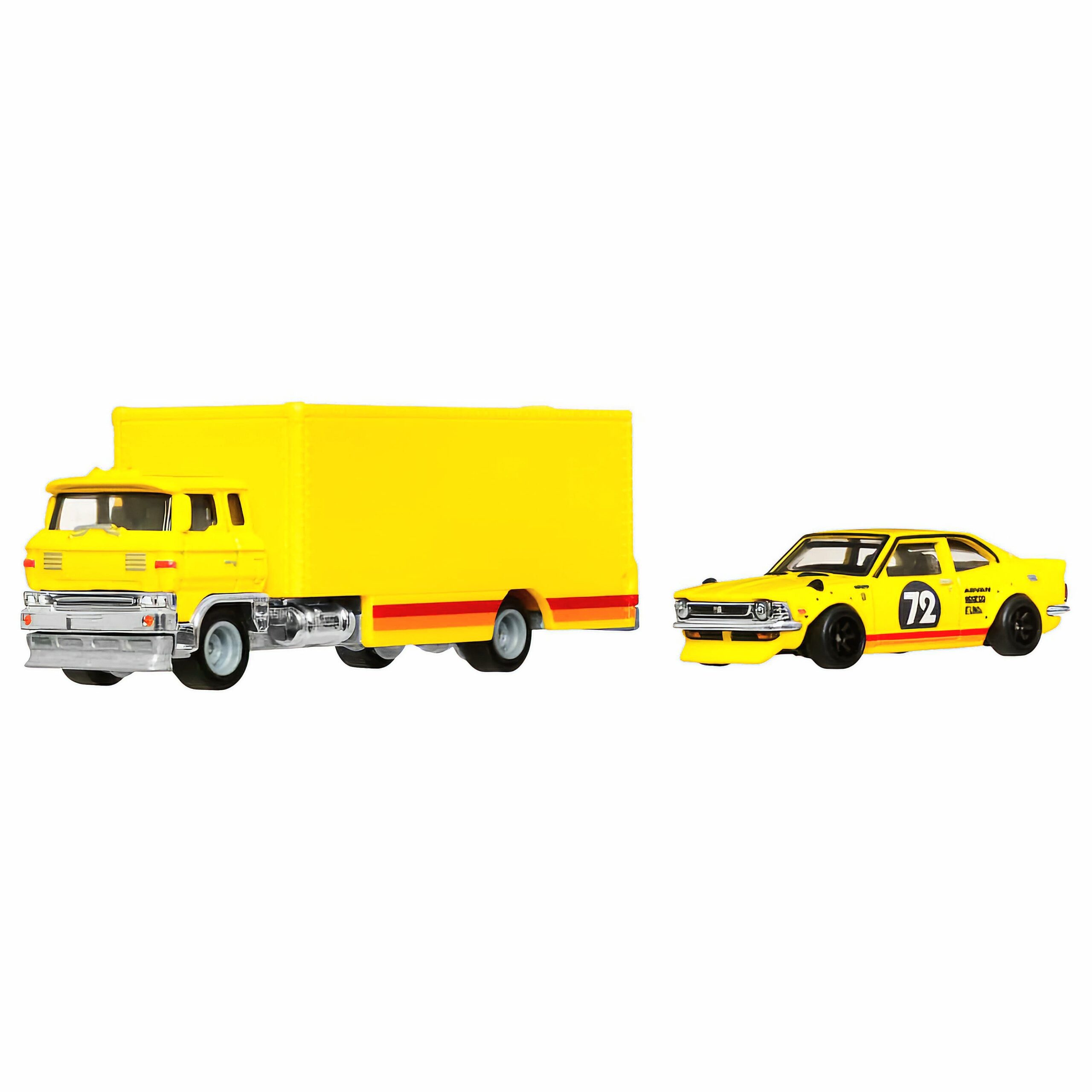 Reîntoarce-te la rădăcinile JDM cu acest set Hot Wheels Team Transport care include un clasic autentic: Toyota Corolla Levin din 1972. Acest model retro este reprodus cu grijă, având caroserie din metal, roți Real Riders din cauciuc și un transportor personalizat care completează perfect stilul old-school. Parte din seria premium Car Culture, acest set este perfect pentru fanii culturii auto japoneze și colecționarii pasionați de modele clasice.