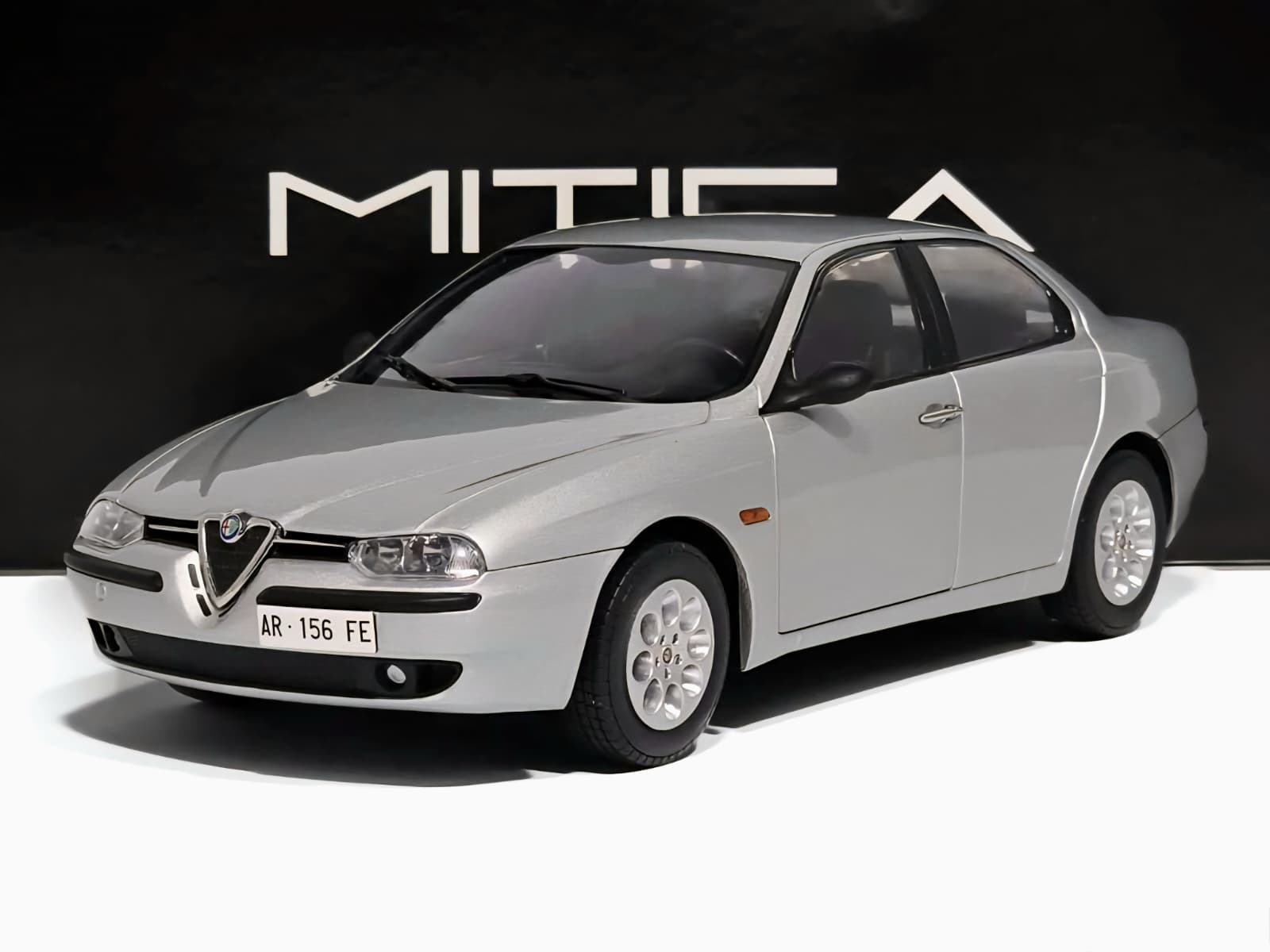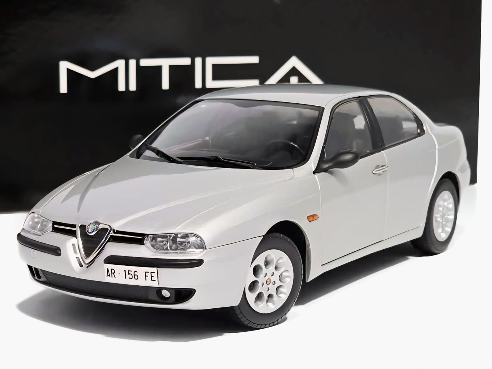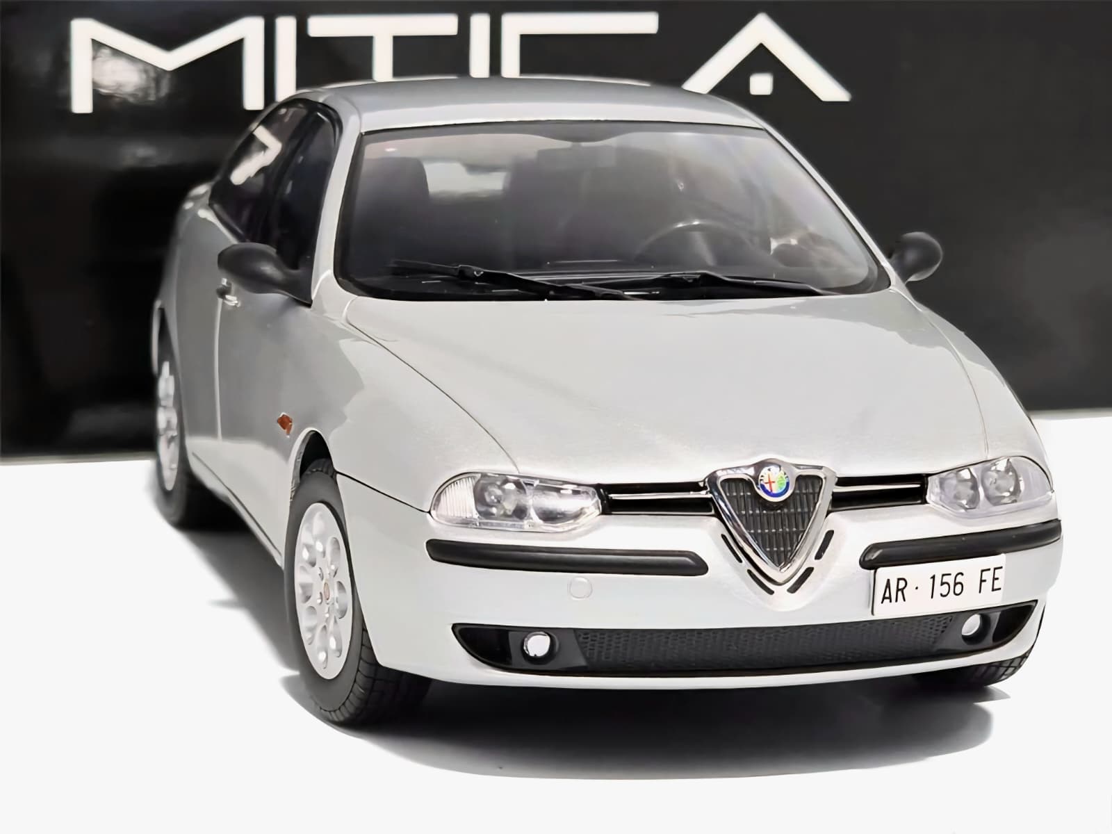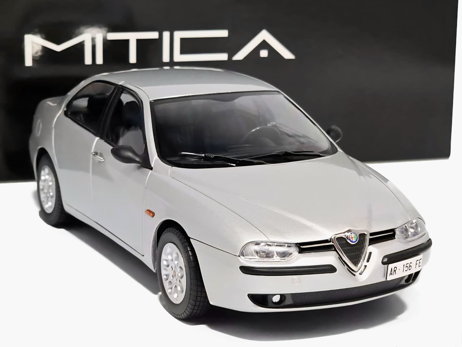 Machetă Alfa Romeo 156 2.0 Twin Spark Mitica Diecast – model die-cast detaliat cu finisaje autentice și interior negru realist. Ideală pentru colecționari de automobile italiene clasice.