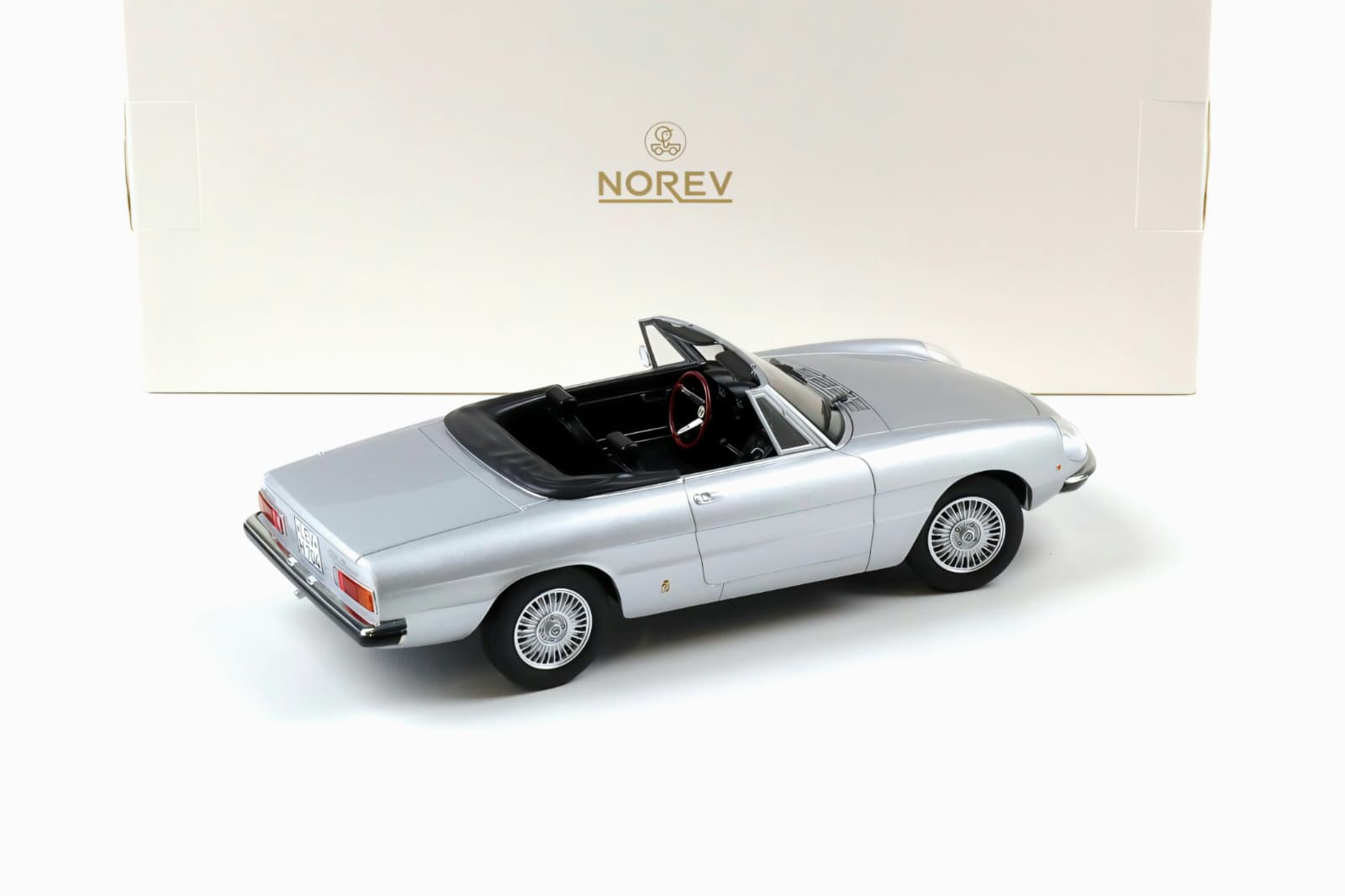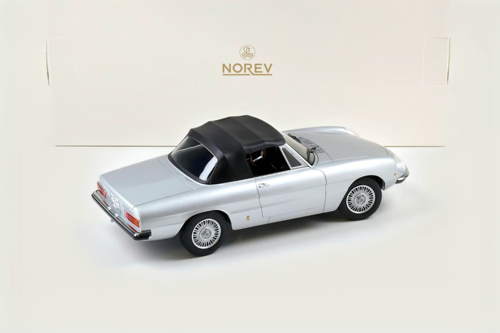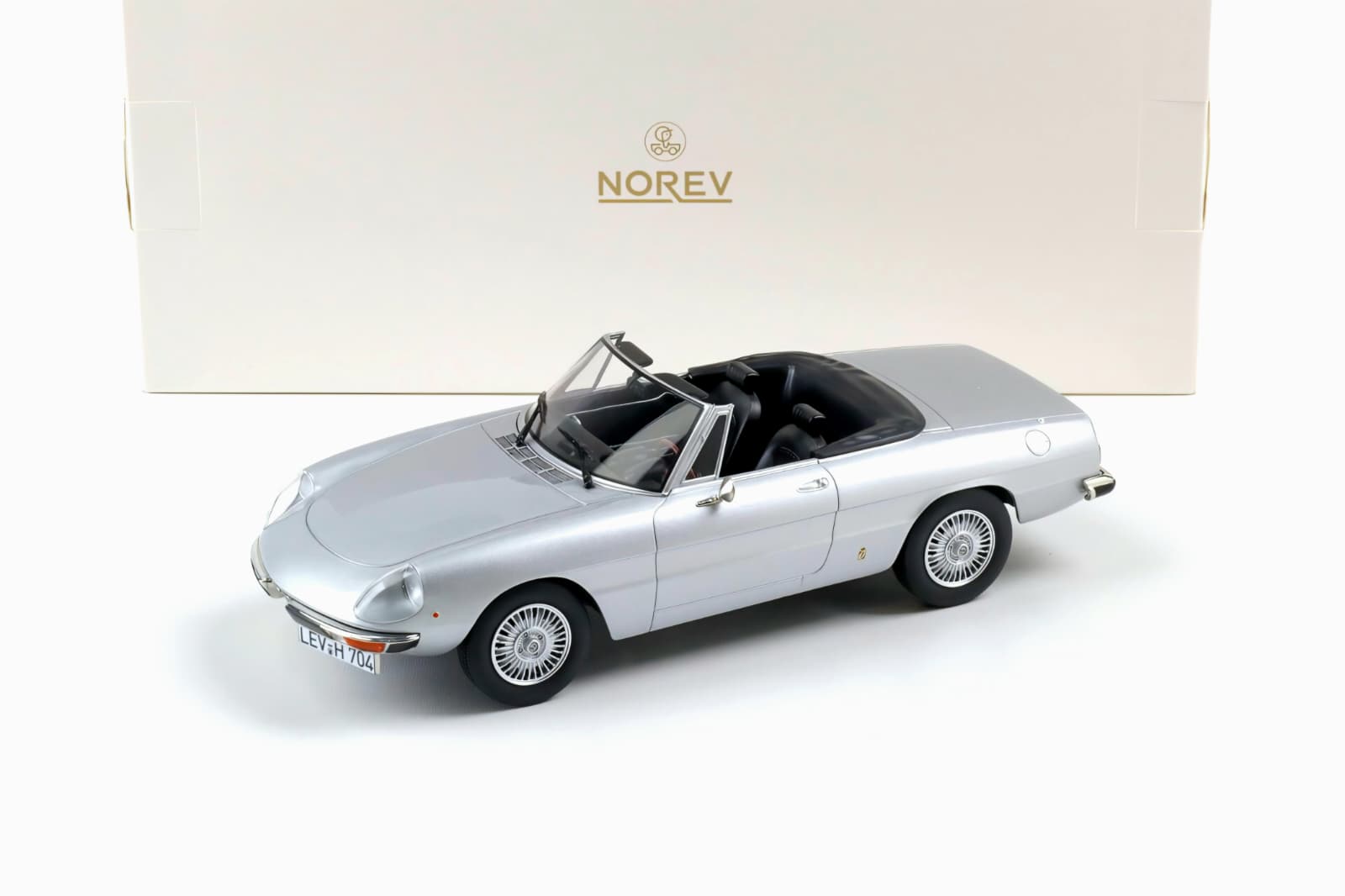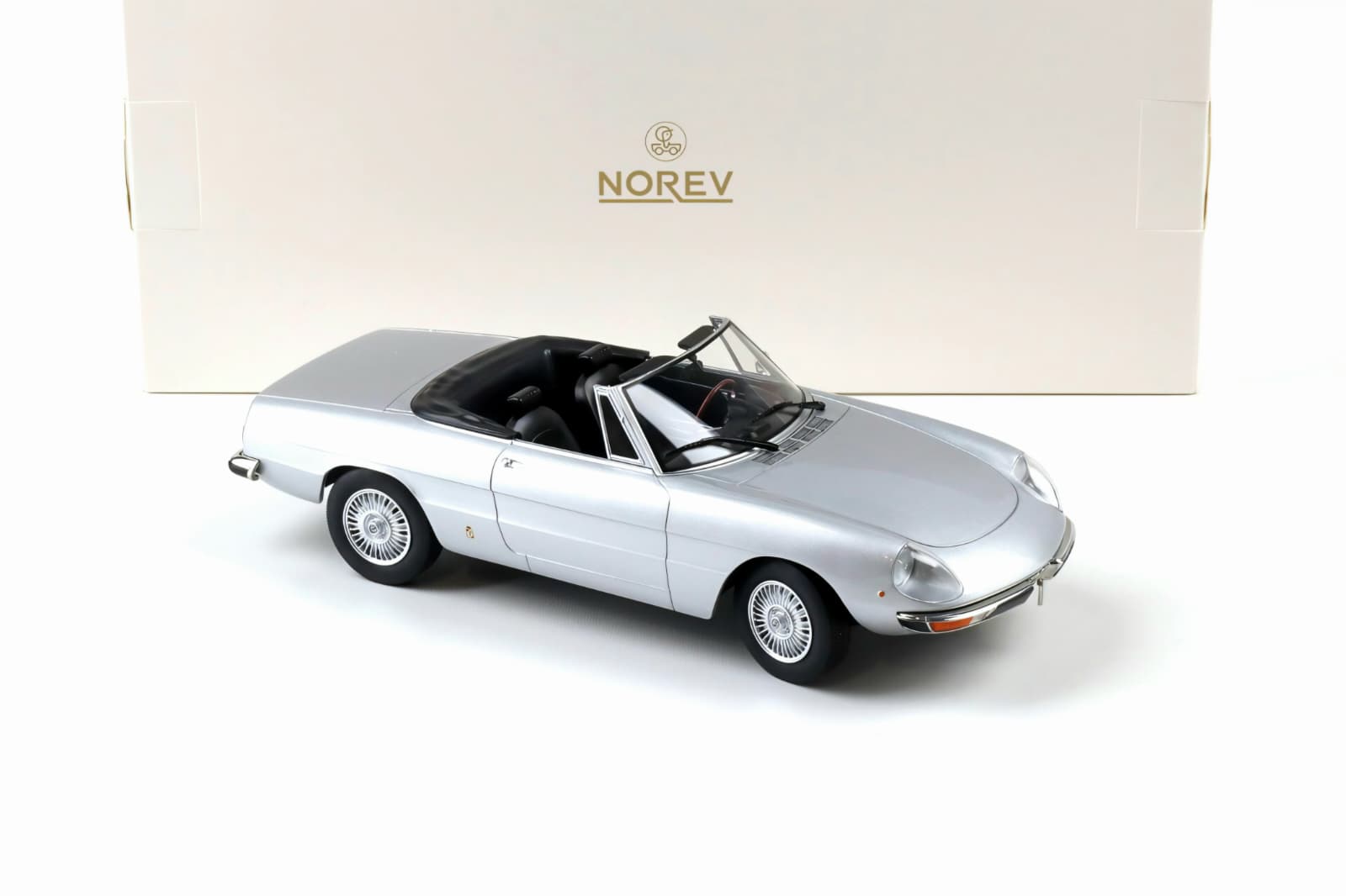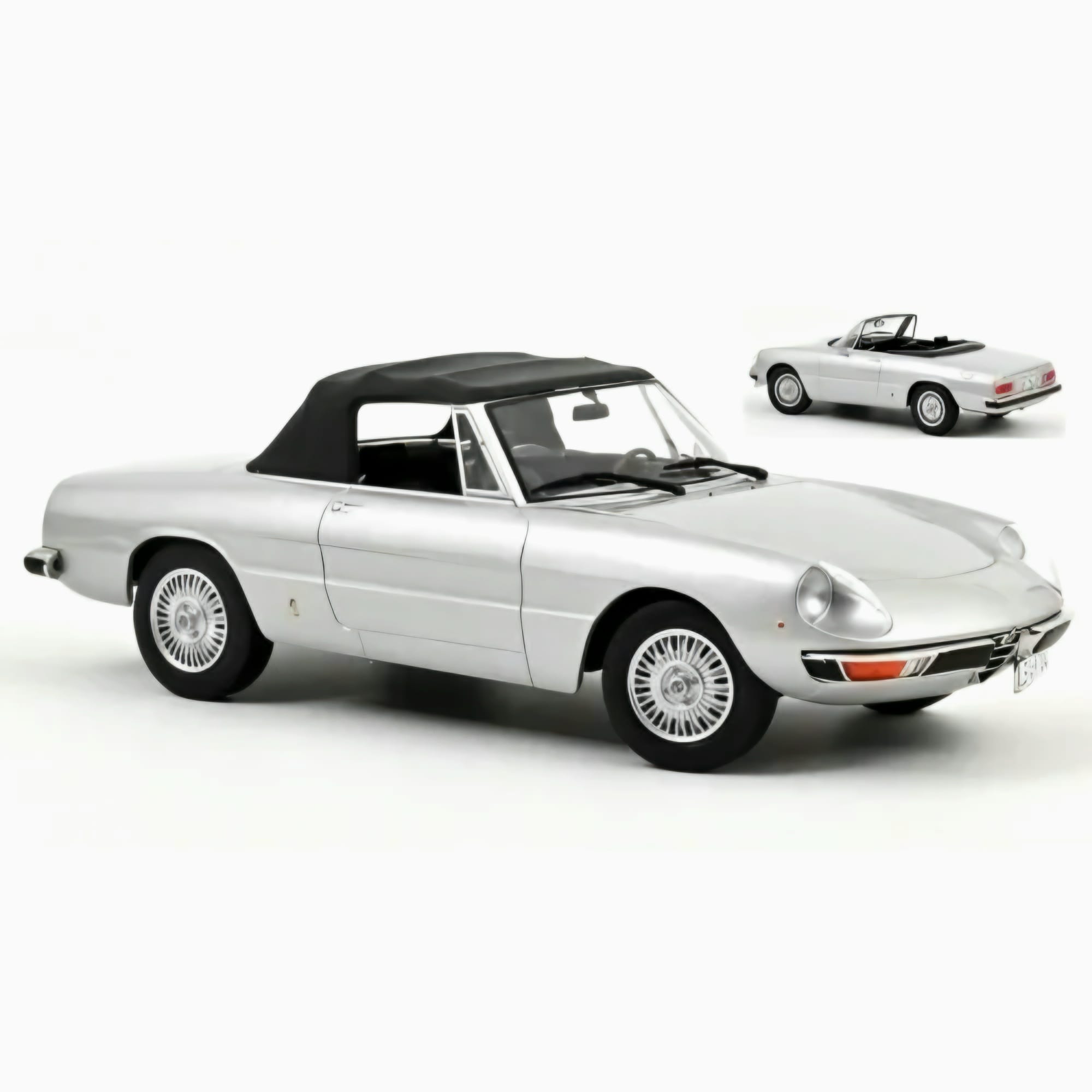 Macheta Alfa Romeo 2000 Spider 1:18 Norev – Silvergrey Metallic reprezintă o reproducere fidelă a elegantului roadster italian, simbol al stilului clasic Alfa Romeo. Norev surprinde perfect liniile fluide, proporțiile rafinate și finisajul sofisticat Silvergrey Metallic, oferind o piesă cu impact vizual plăcut.