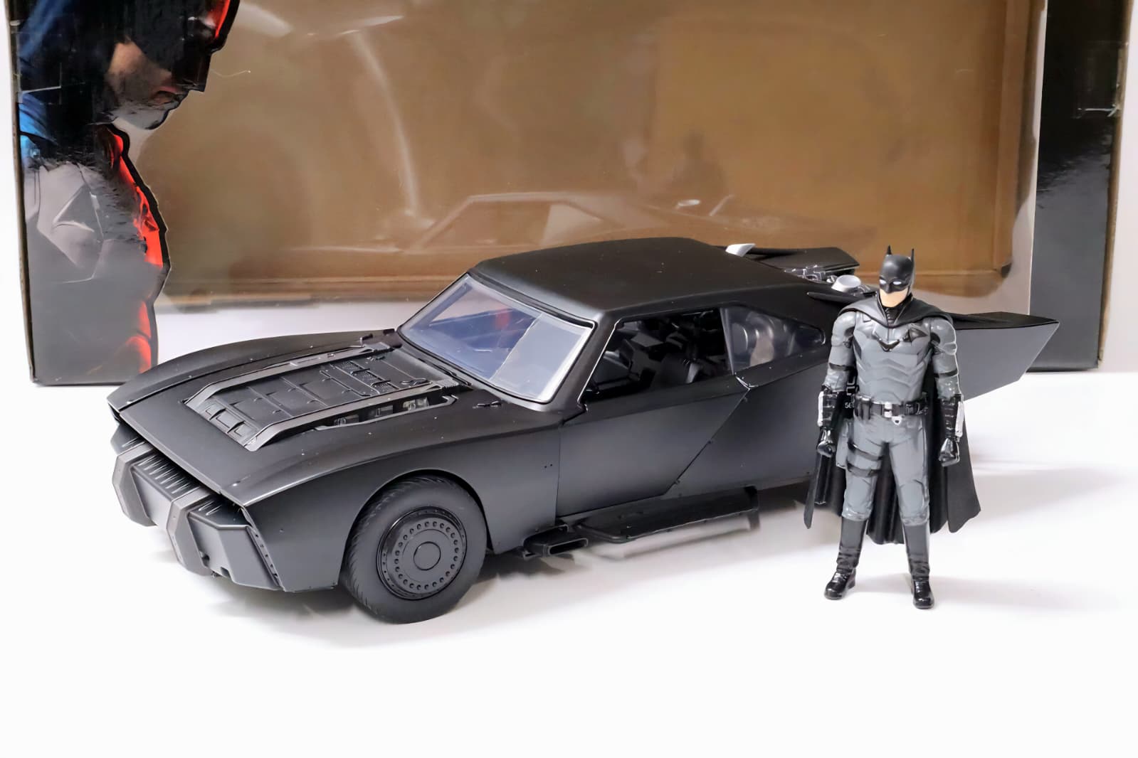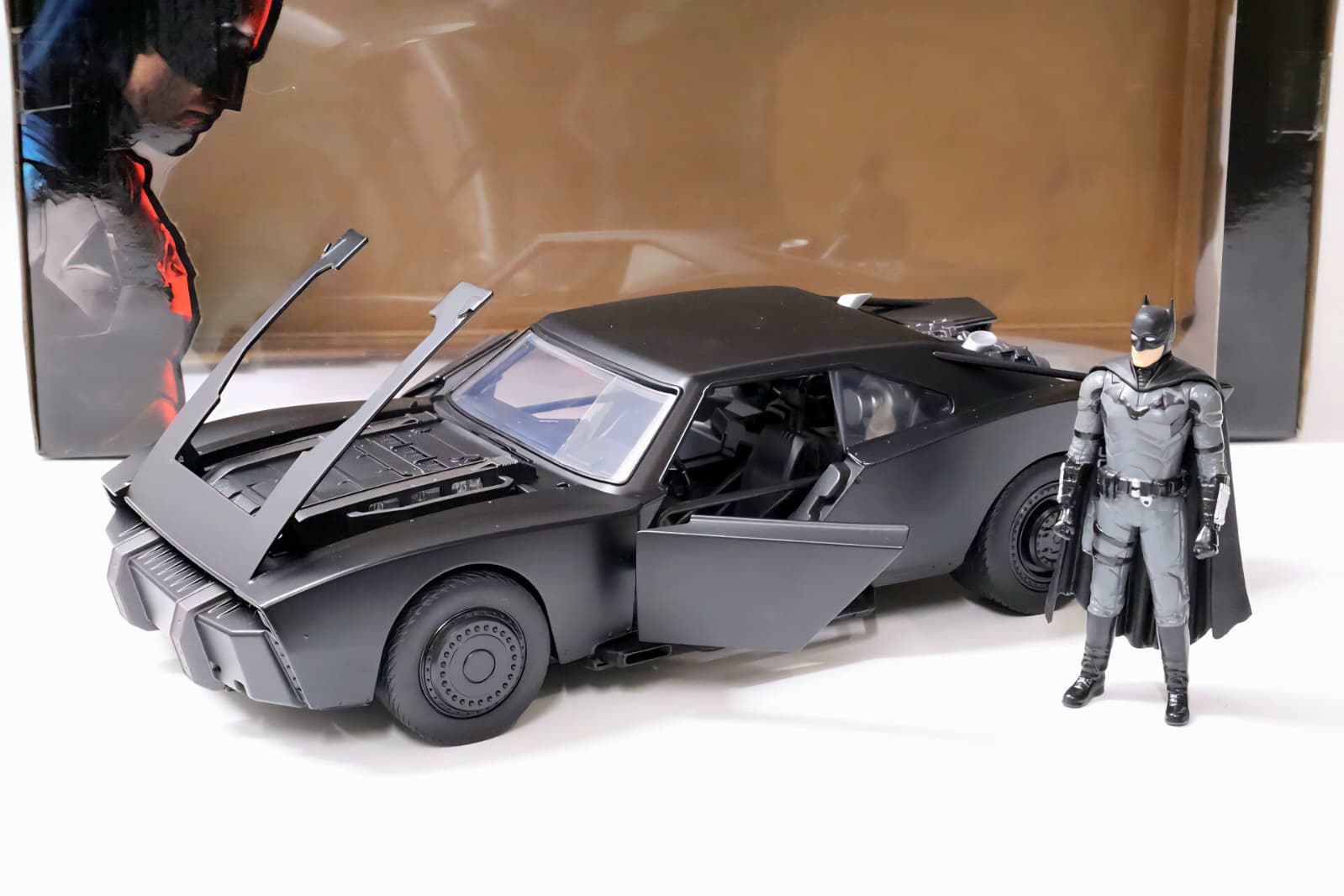 Completează-ți colecția cu această machetă Batmobile realizată de Jada Toys, la scara 1:18, în finisaj negru mat, însoțită de o figurină Batman autentică. Modelul reproduce cu fidelitate celebrul vehicul al supereroului, având caroserie din metal turnat, elemente detaliate și piese mobile precum uși și capotă.