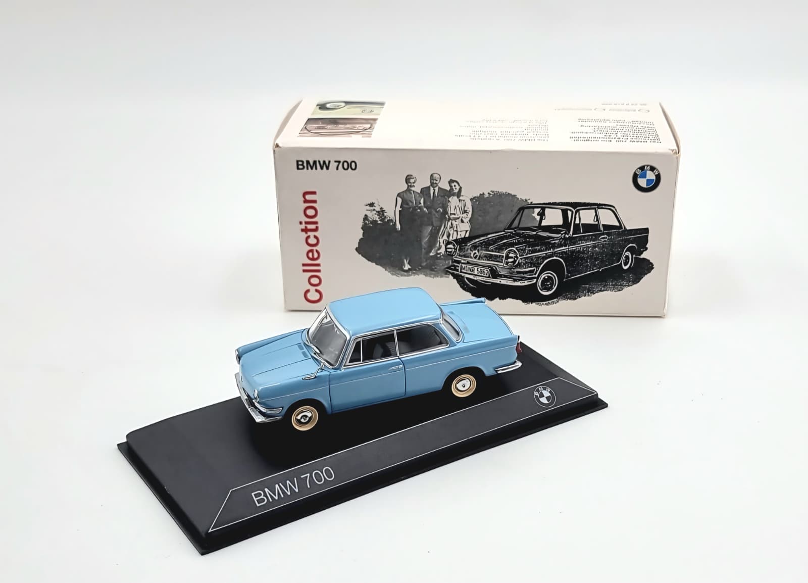Macheta auto la scara 1:43 realizată de Minichamps reproduce fidel legendarul BMW 700, un model clasic compact și emblematic al anilor ’60. Finisajul albastru elegant și detaliile atent redate fac din această machetă o piesă valoroasă pentru colecționarii de miniaturi BMW și pasionații de automobile istorice.