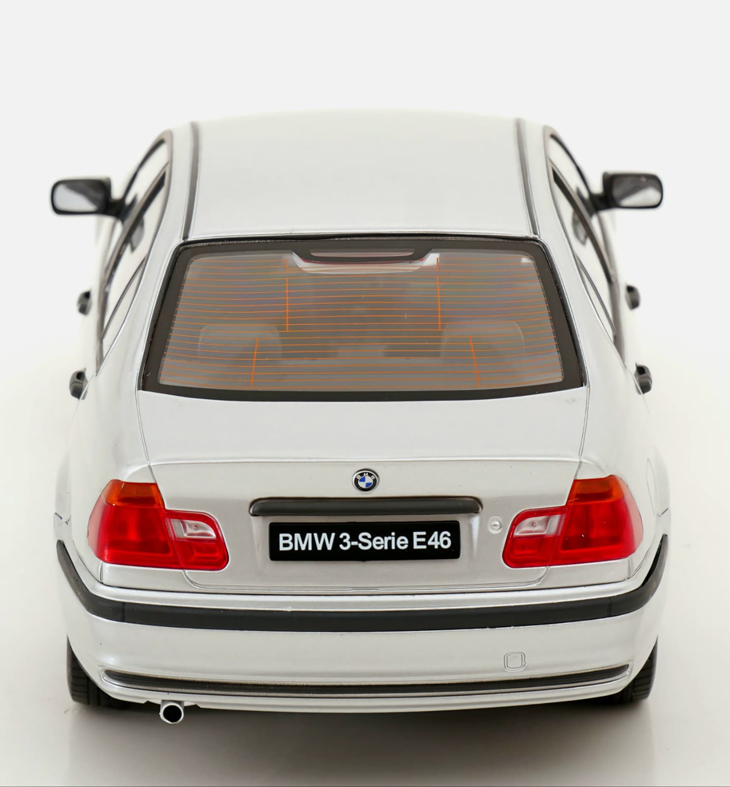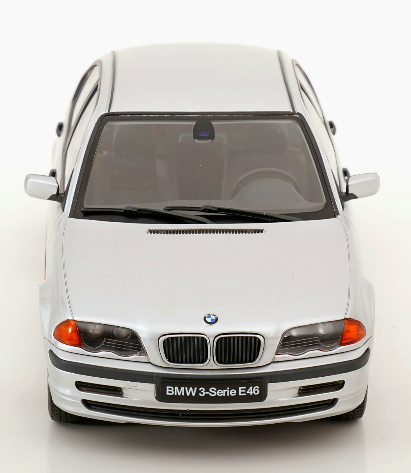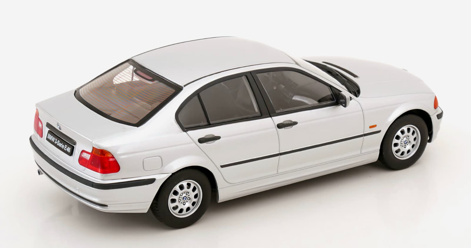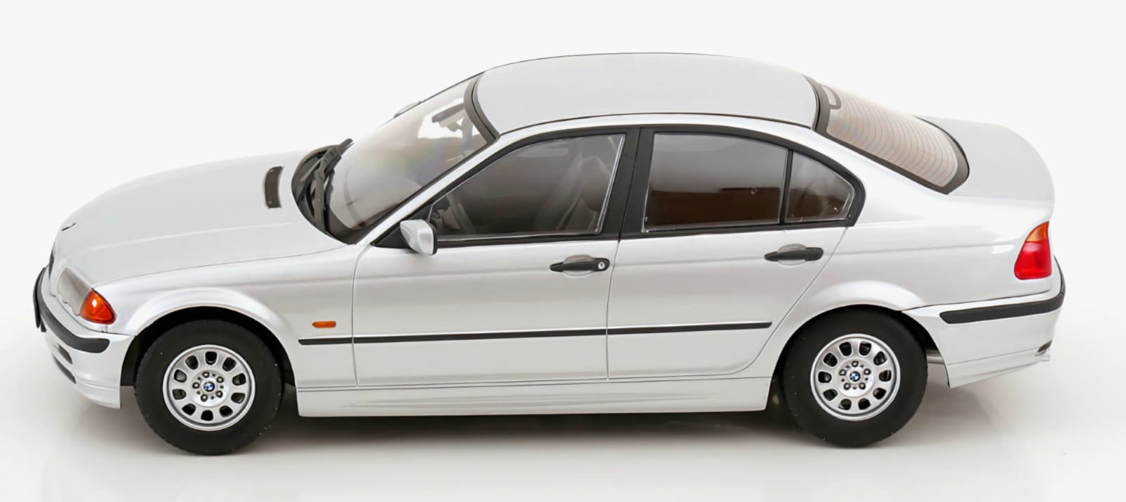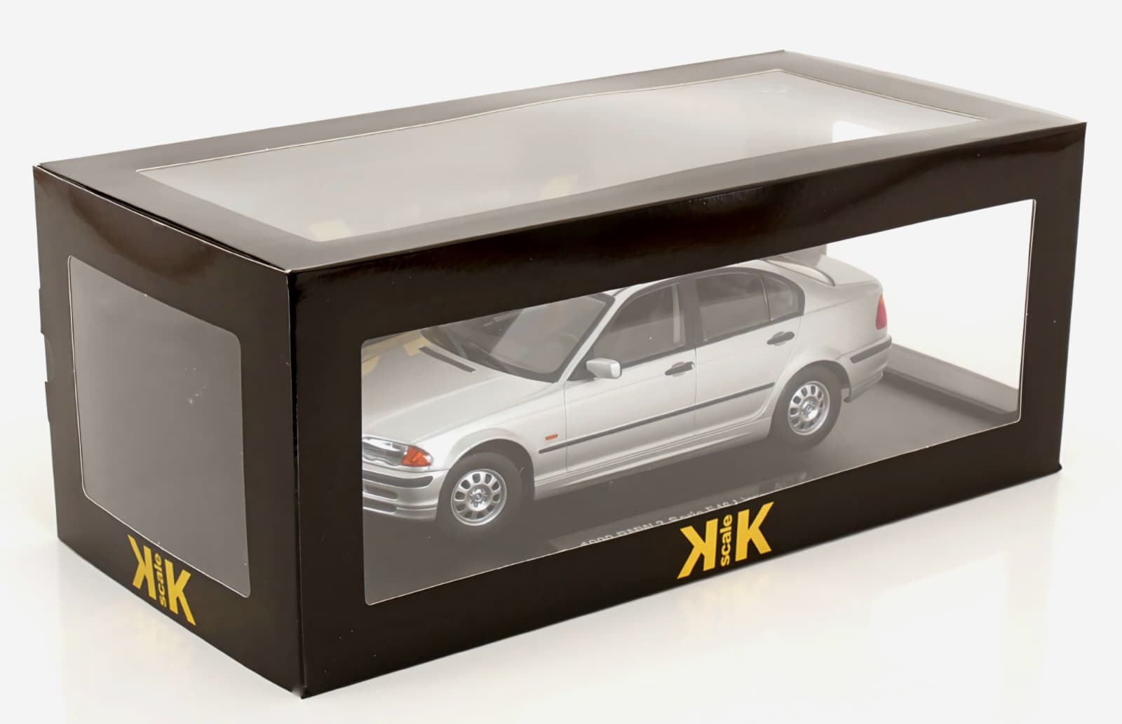 Macheta BMW Seria 3 E46 Sedan 1:18 KK Scale, reproduce unul dintre cele mai apreciate modele BMW, recunoscut pentru echilibrul perfect între design, confort și performanță. Modelul impresionează prin proporțiile corecte, detaliile realiste ale caroseriei și finisajul elegant în culoarea argintiu, care evidențiază liniile clasice și rafinate ale generației E46. Construcția die-cast oferă durabilitate și un nivel bun de detaliu, fiind o piesă ideală pentru colecționari.