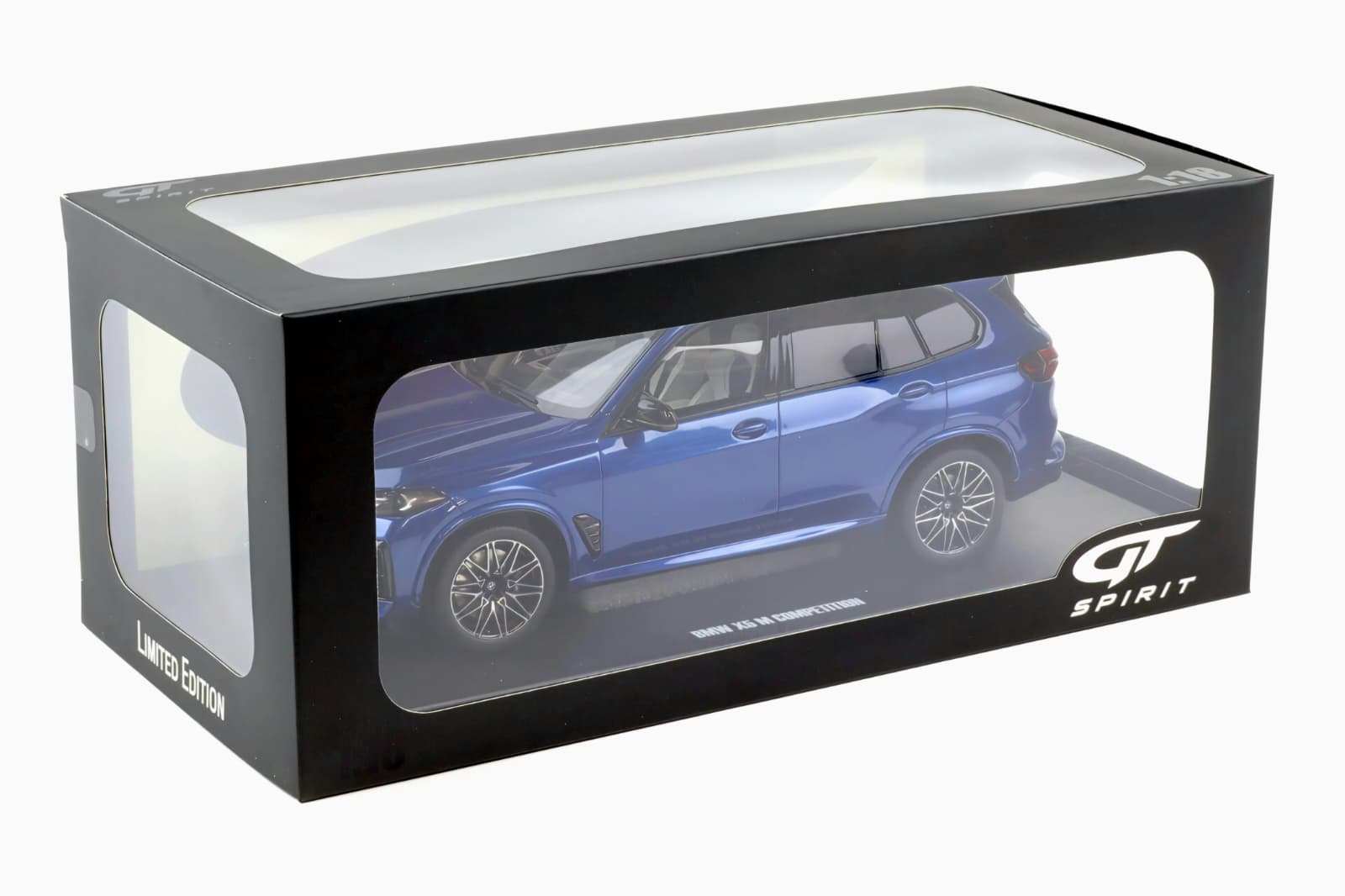 Macheta BMW X5 M Competition 2023 1:18 GT Spirit (GT967) – Marina Bay Blue Metallic este o replică premium a SUV-ului de performanță BMW, realizată manual din rășină, destinată colecționarilor exigenți. Finisajul exclusiv și fidelitatea detaliilor evidențiază designul sportiv și impunător al versiunii M Competition.