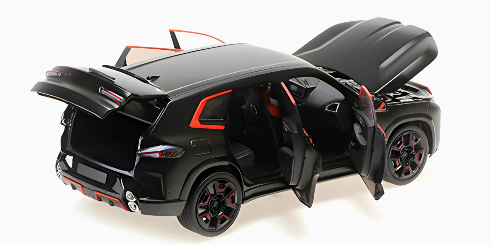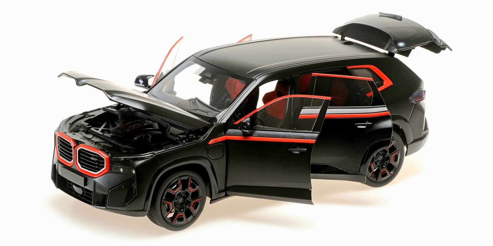Macheta BMW XM 1:18 Minichamps – Matt Black – Premium Die-Cast – Full Open este o replică impresionantă a SUV-ului de performanță dezvoltat de divizia BMW M. Modelul reproduce fidel designul agresiv și modern al modelului BMW XM, fiind evidențiat de finisajul sofisticat Matt Black și de detaliile premium ale caroseriei și interiorului.