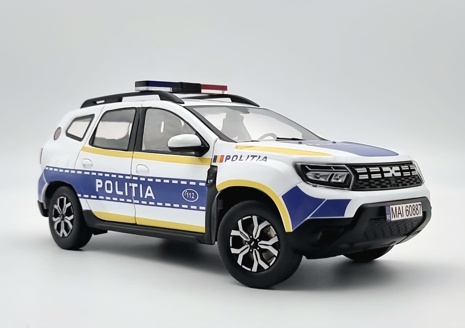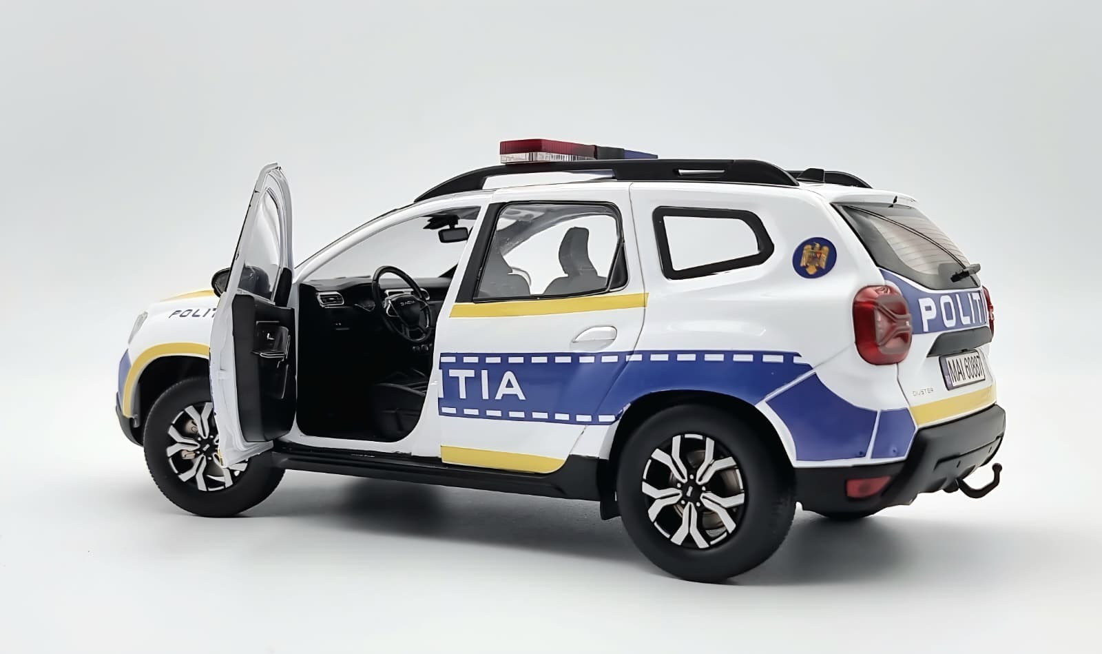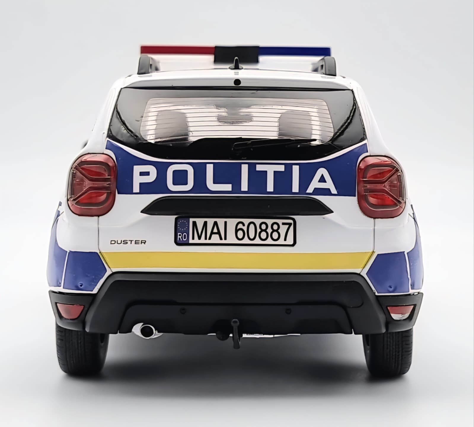 Plasează acum precomanda pentru macheta Dacia Duster Poliția Română 1:18 – o piesă handmade unică, perfectă pentru colecția ta!