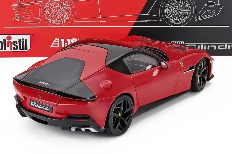 Macheta Ferrari 12 Cilindri 1:18 Polistil, reproduce noul grand tourer al mărcii italiene, echipat cu legendarul motor V12 aspirat natural. Modelul impresionează prin designul modern și agresiv, liniile fluide și detaliile inspirate din tradiția Ferrari. Finisajul iconic în culoarea Rosso Corsa evidențiază perfect eleganța și performanța acestui model exclusivist.