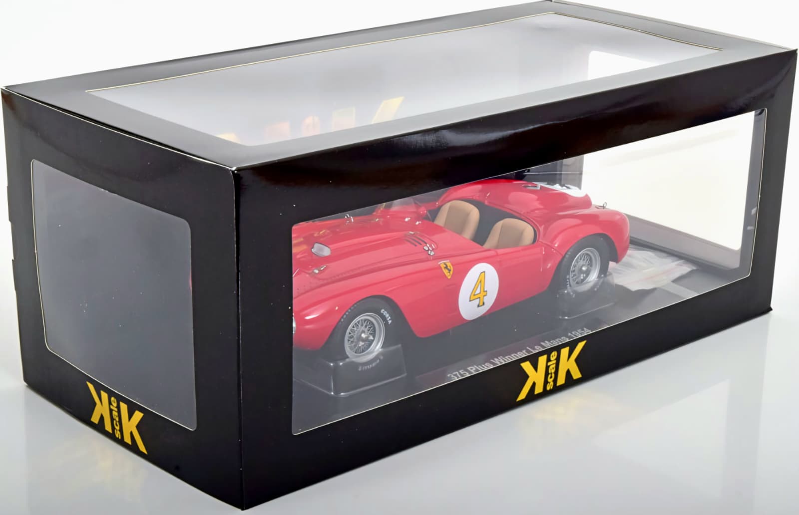 Macheta Ferrari 375 Plus 1:18 KK Scale, reproduce legendarul prototip de curse care a câștigat celebra competiție 24 Hours of Le Mans în 1954.