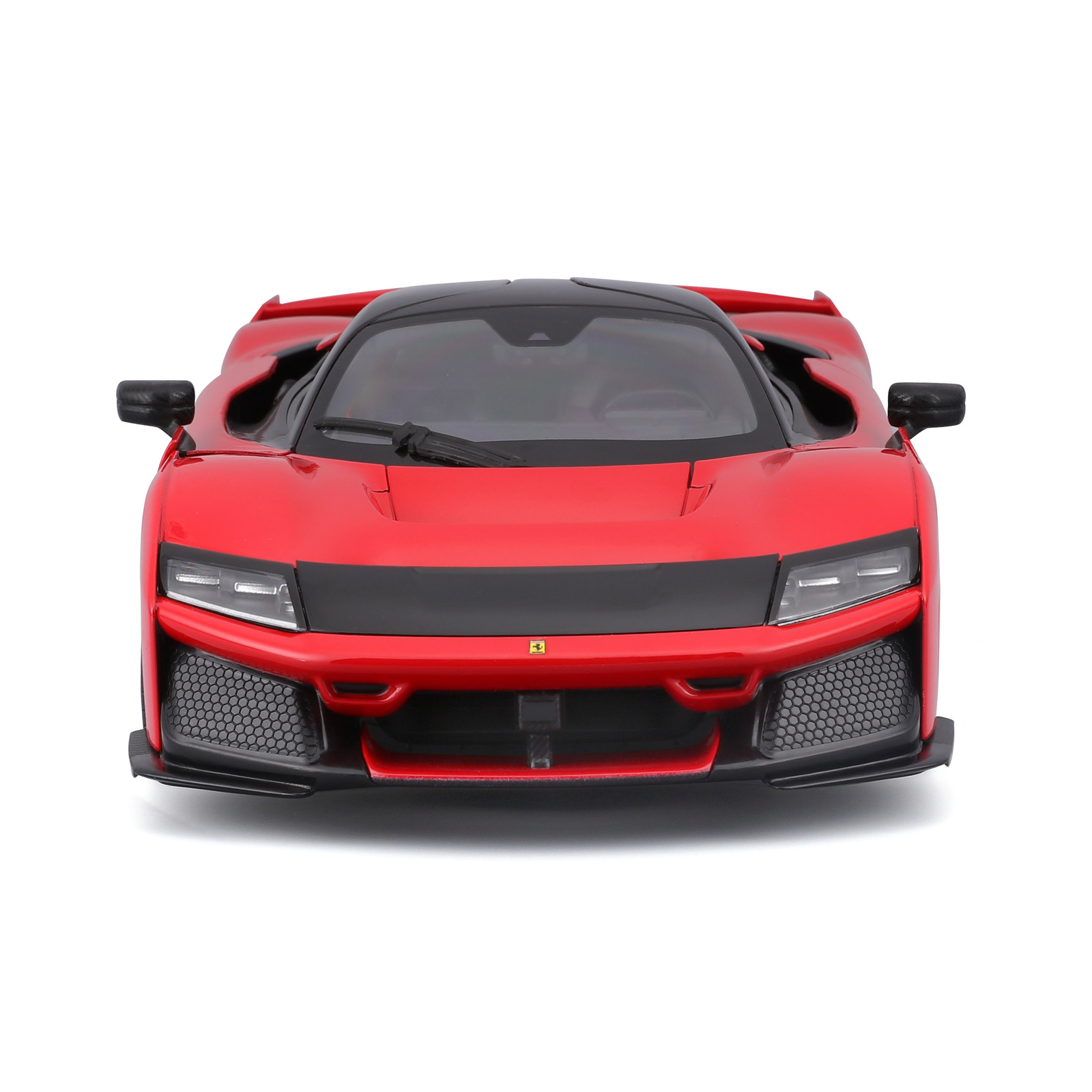 Construită din metal (die-cast), macheta oferă durabilitate și un nivel bun de detaliu, fiind potrivită atât pentru colecționari, cât și pentru pasionații de modele Ferrari moderne.