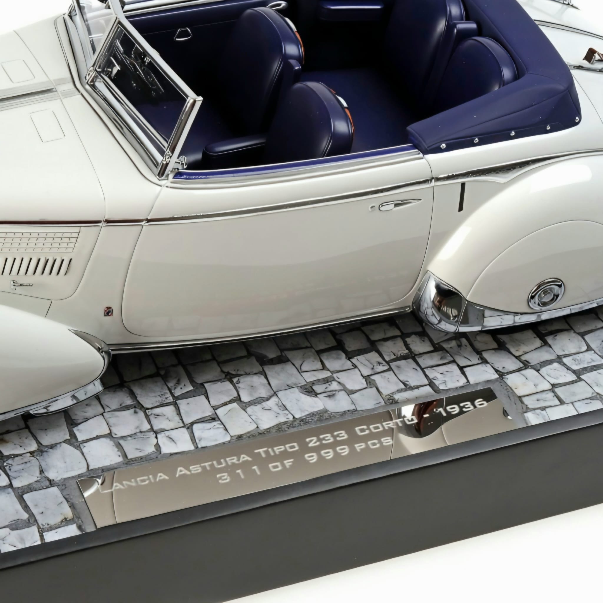 O piesă rară și elegantă, perfectă pentru vitrine dedicate automobilelor clasice italiene, modelelor istorice Lancia sau colecțiilor premium de machete la scară 1:18.