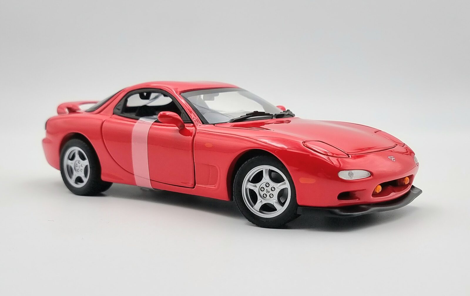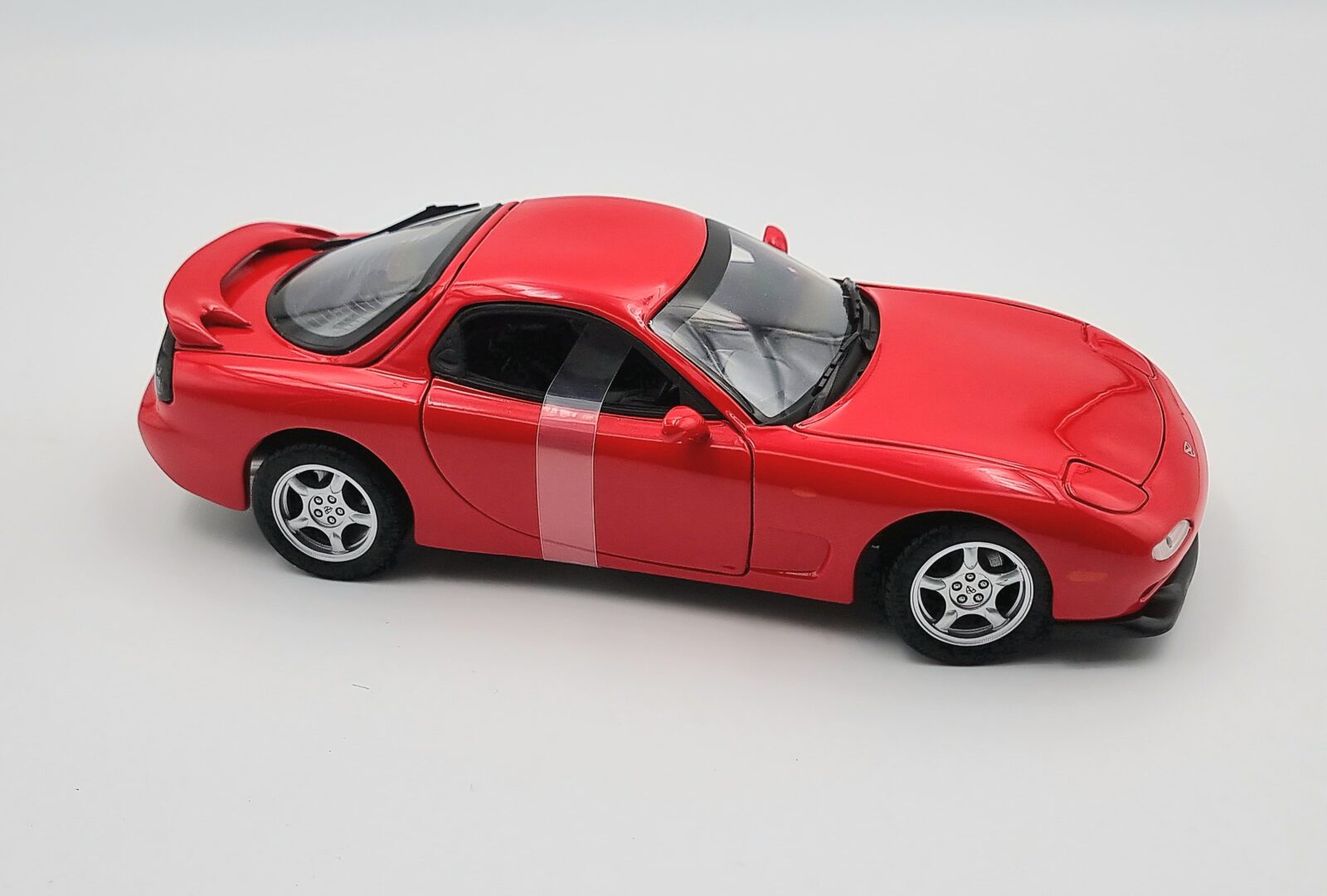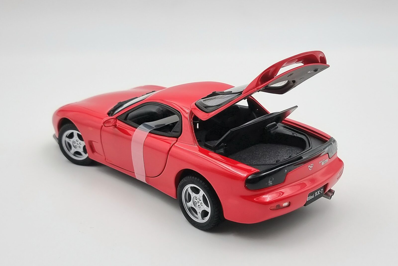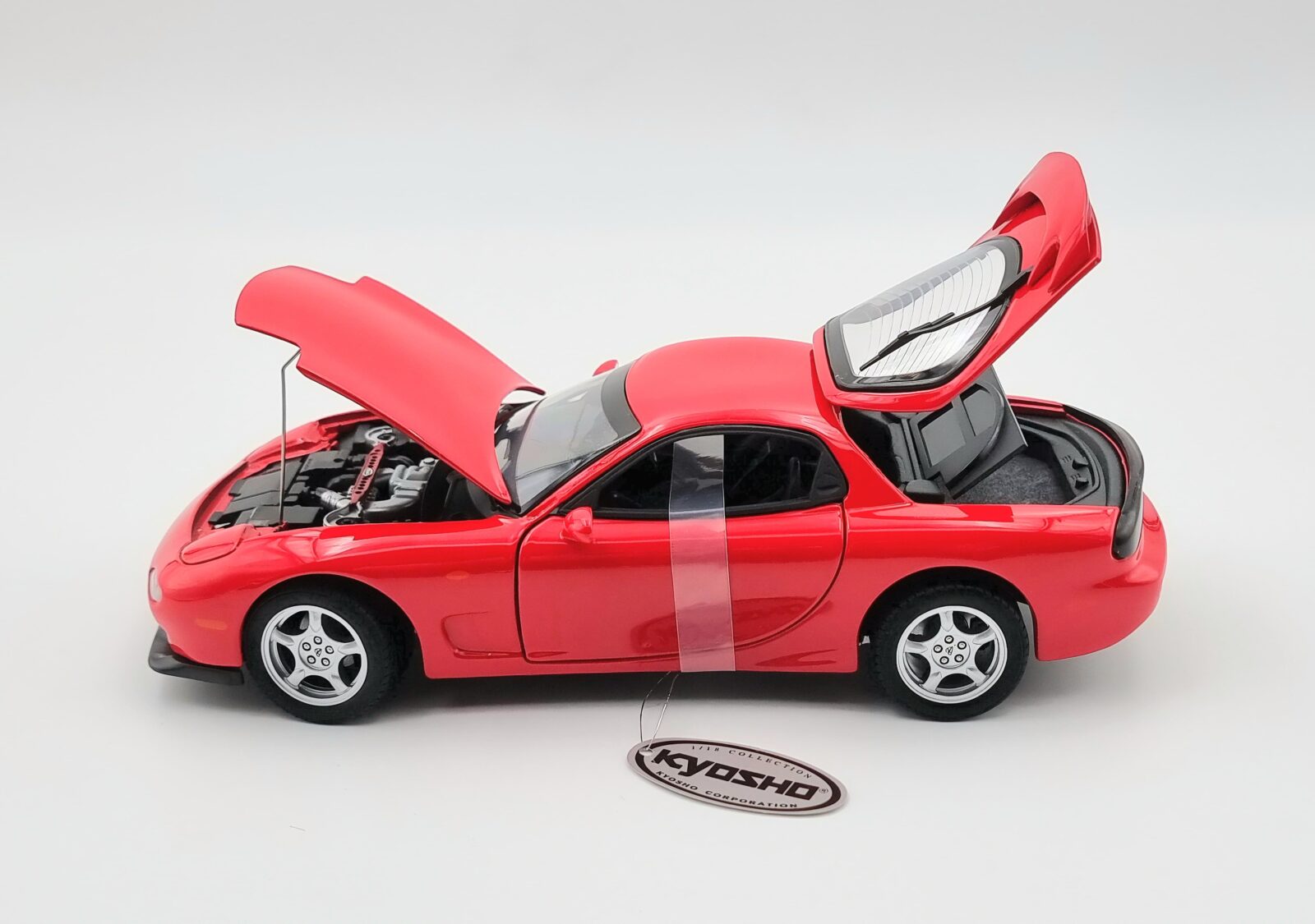 • Performanță Vizuală: Modelul Mazda RX-7 Kyosho este ideal pentru a fi expus în colecțiile de mașini, datorită detaliilor realiste care imită perfect proporțiile și stilul mașinii originale.
