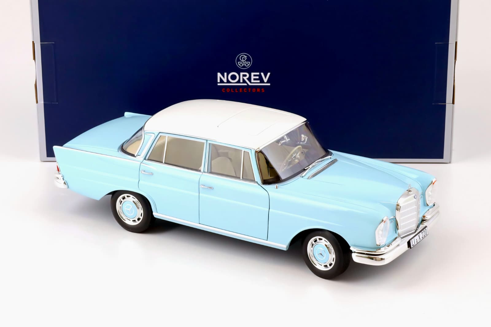 Macheta Mercedes-Benz 220 S 1:18 Norev – aduce farmecul clasic al anilor ’50 într-o reproducere elegantă și atent detaliată. Modelul se remarcă prin liniile rafinate, cromul fin și finisajul superb în nuanța Light Blue, oferind autenticitate și prezență vizuală deosebită.