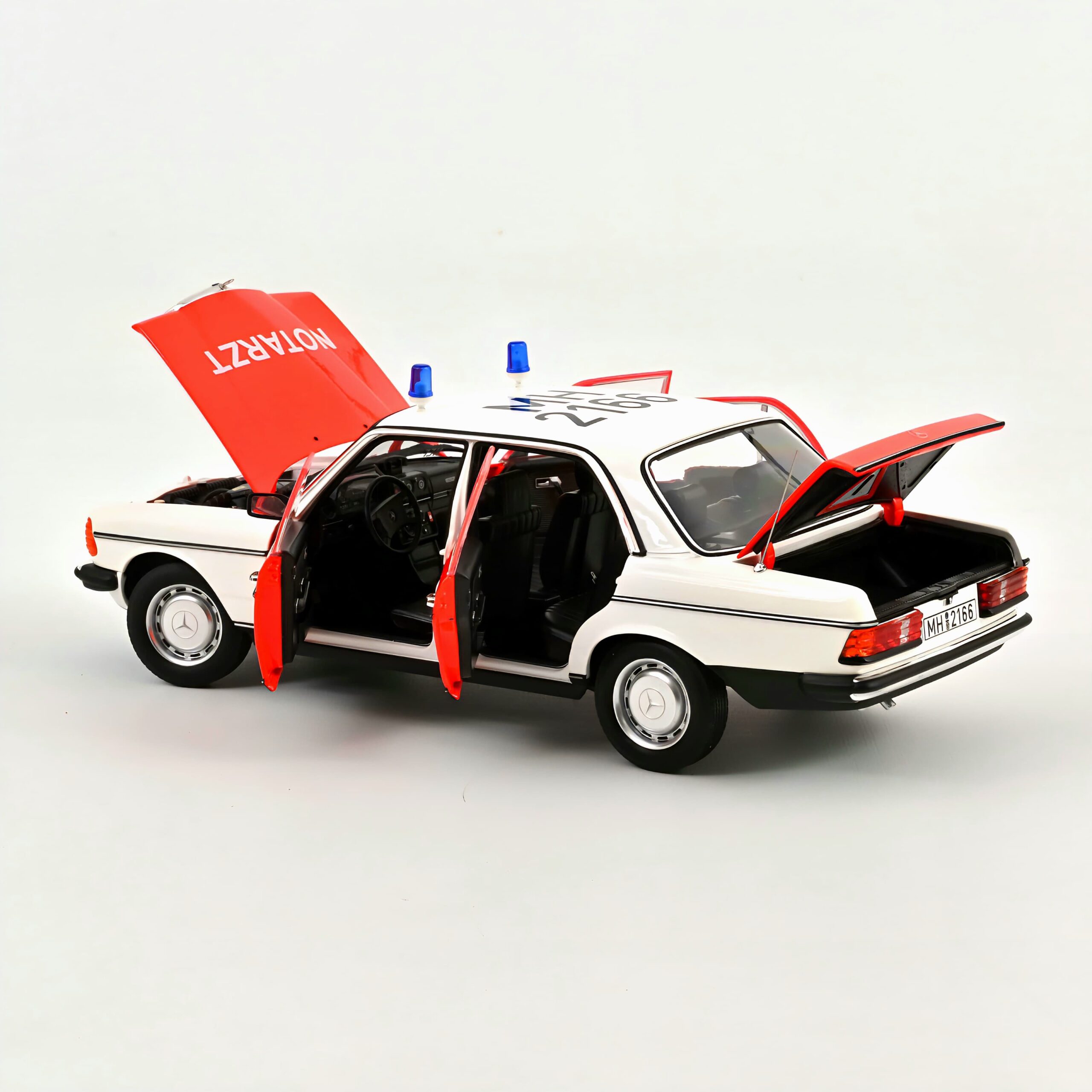 Machetă Mercedes-Benz E-Class (W123) Ambulanță – Norev – detalii autentice, finisaj impecabil. Model rar, perfect pentru colecționari de vehicule clasice!