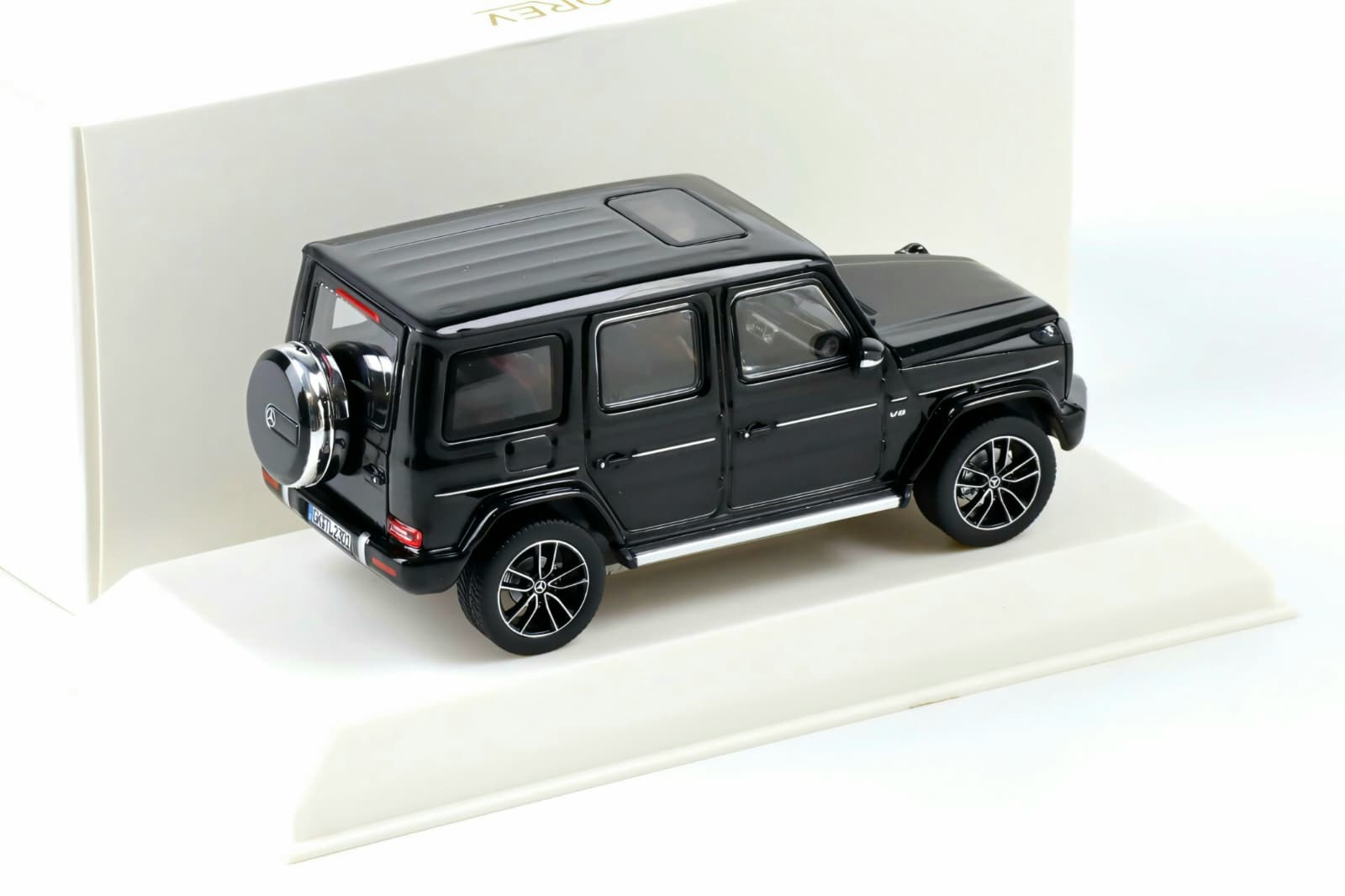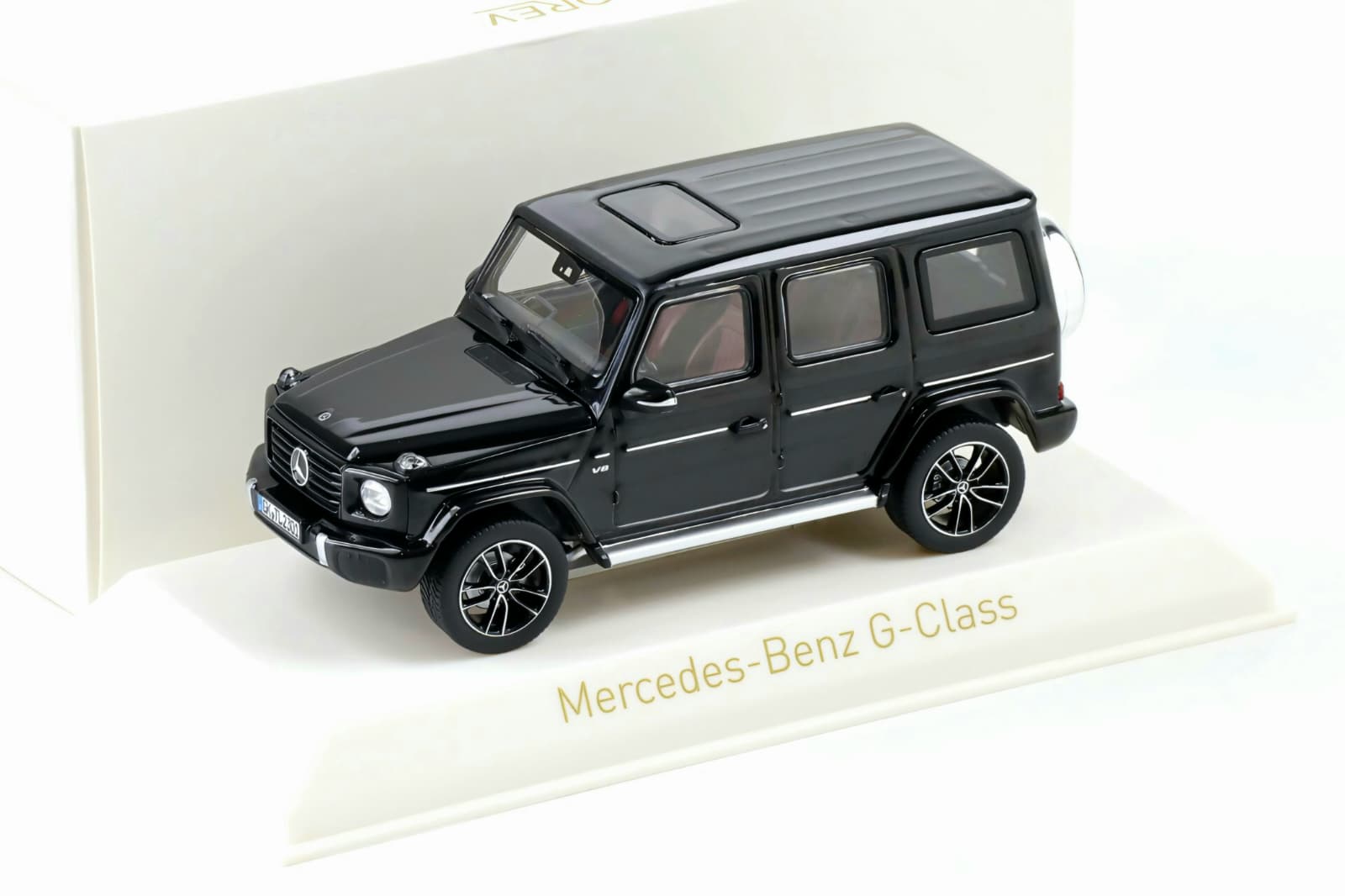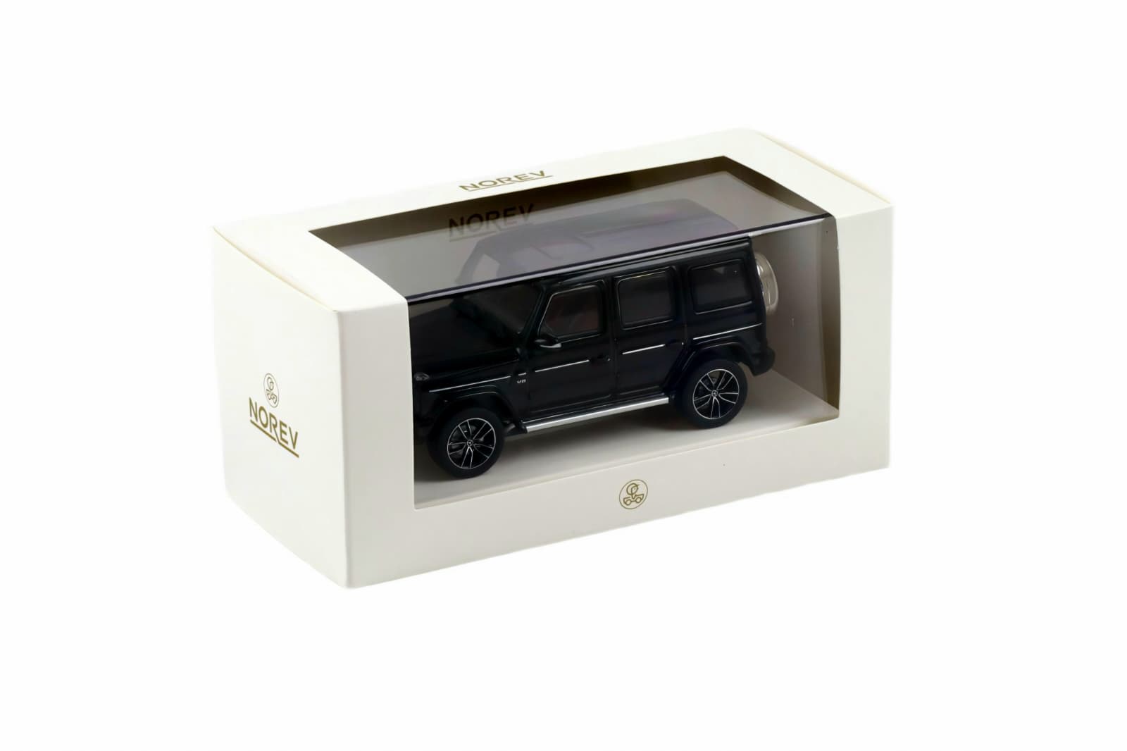 Macheta Mercedes-Benz G-Class 1:43 Norev – Obsidian Black Metallic reprezintă o reproducere fidelă a emblematicului SUV de lux, recunoscut pentru designul său robust și atemporal. Norev surprinde perfect liniile iconice ale G-Class, proporțiile impunătoare și finisajul elegant Obsidian Black Metallic, oferind o piesă cu impact vizual plăcut.