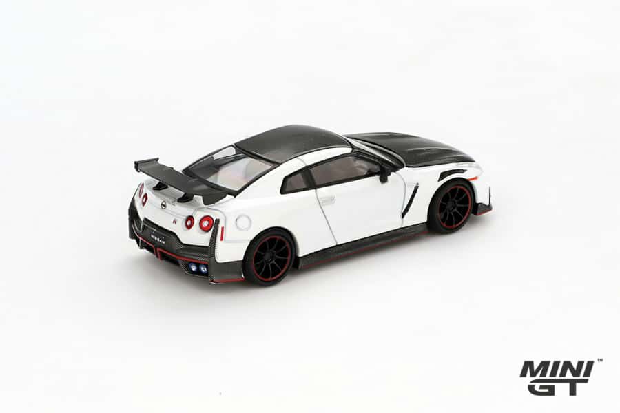 Machetă Nissan GT-R (R35) Nismo 1:64 Mini GT – Performanță supremă în nuanța Brilliant White Pearl