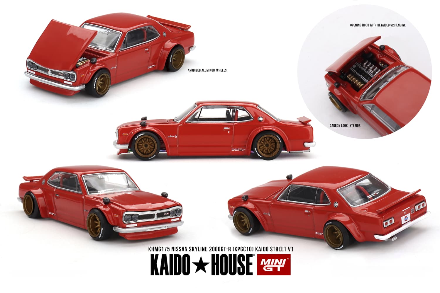 Comandă online macheta Nissan Skyline GT-R Kaido Street V1 Kaido House 1:64 Roșu și adaugă în colecția ta un JDM iconic reinterpretat spectaculos!