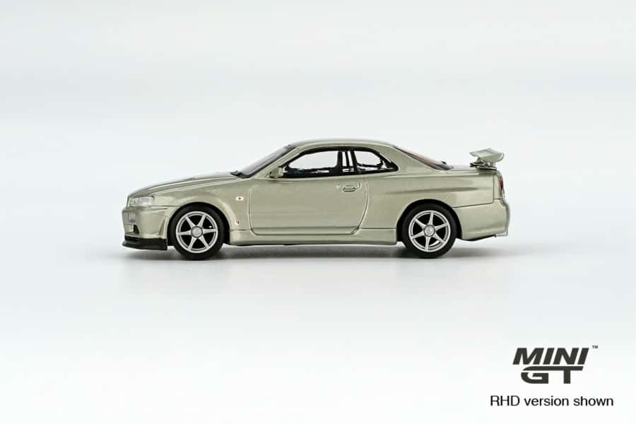O miniatură spectaculoasă, precis realizată și indispensabilă pentru orice colecție dedicată legendelor JDM – Skyline R34 V-Spec II rămâne o piesă de aur în format Mini GT!