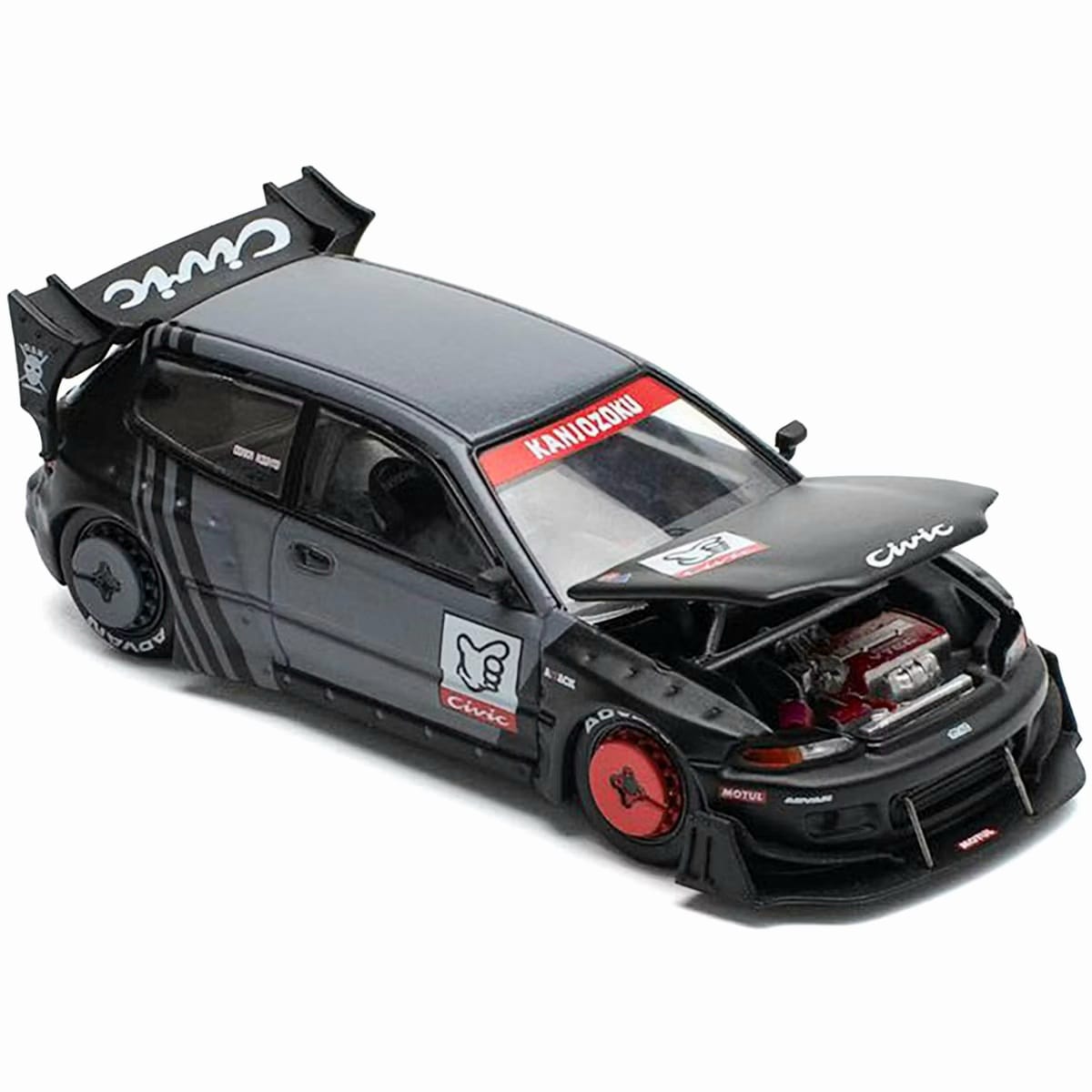 Machetă Pandem Civic EG6 Kanjozoku 1:64 Pop Race – Spirit JDM autentic în negru/gri/roșu