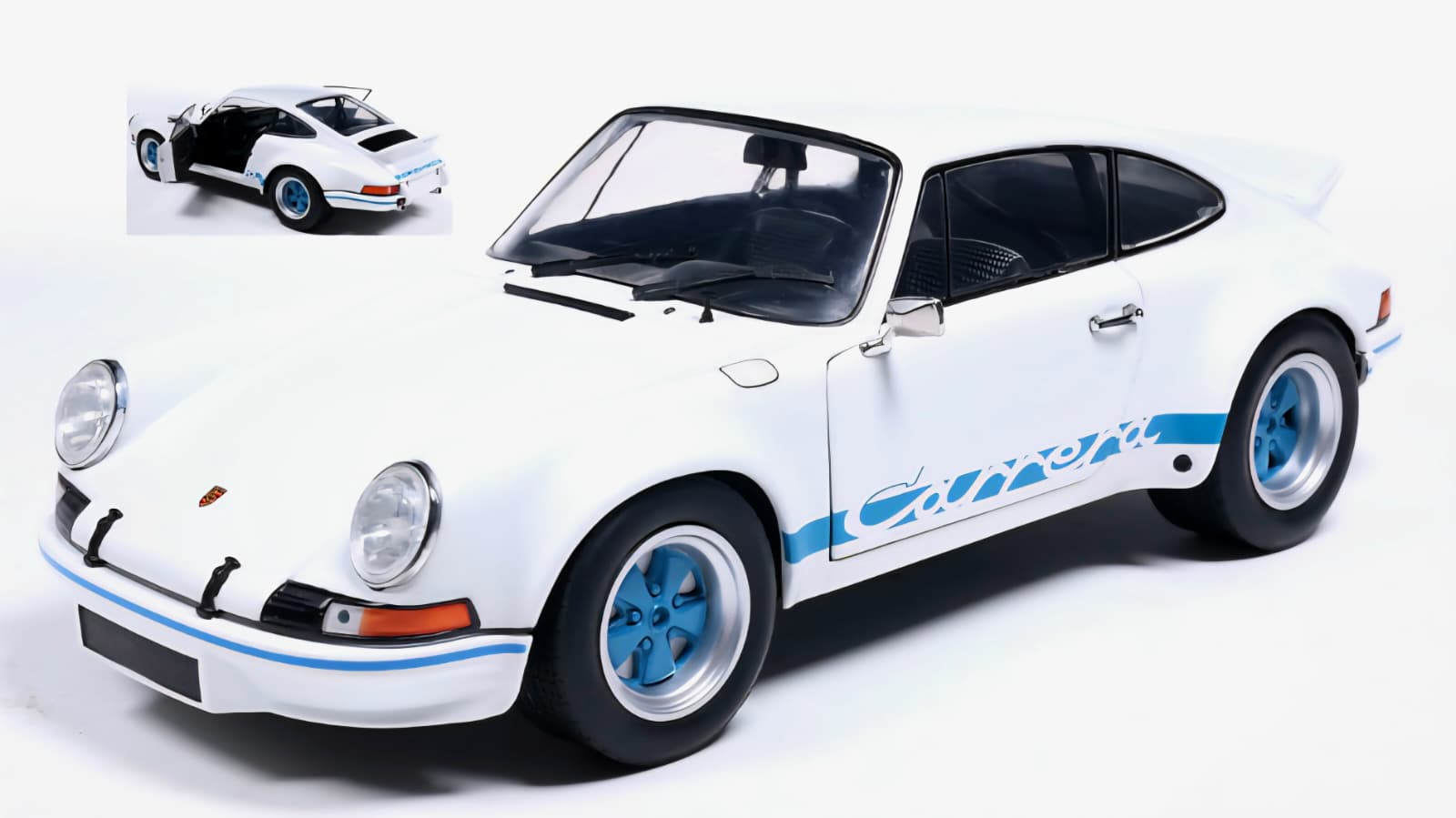 Caroserie albă cu Carrera Stripes originale.