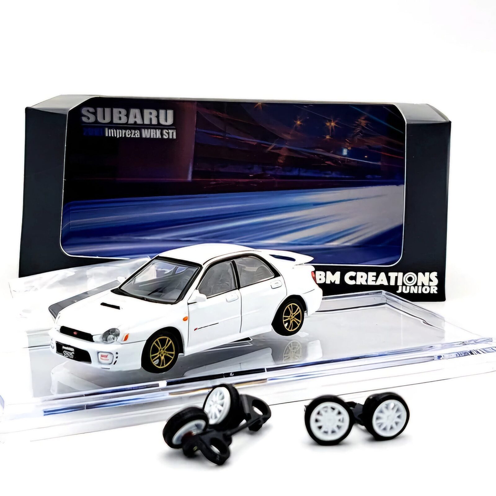 Macheta Subaru Impreza WRX 2001 LHD produs de BM Creations – Model Premium cu Suspensie Reglabilă!